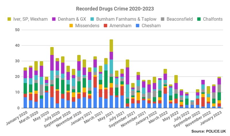 However, as Buckinghamshire Council’s Fly Tipping team readily acknowledges, there are many examples of cooperation with local Police which have led to effective outcomes. - Drug and Alcohol Abuse – Buckinghamshire Council web page ‘Drug and alcohol abuse‘ gives advice and signposting relating to health and addiction. It also signposts on reporting drug or alcohol related crimes in emergency and non-emergency situations. Drug Crime remains an important ongoing category within our surveys.